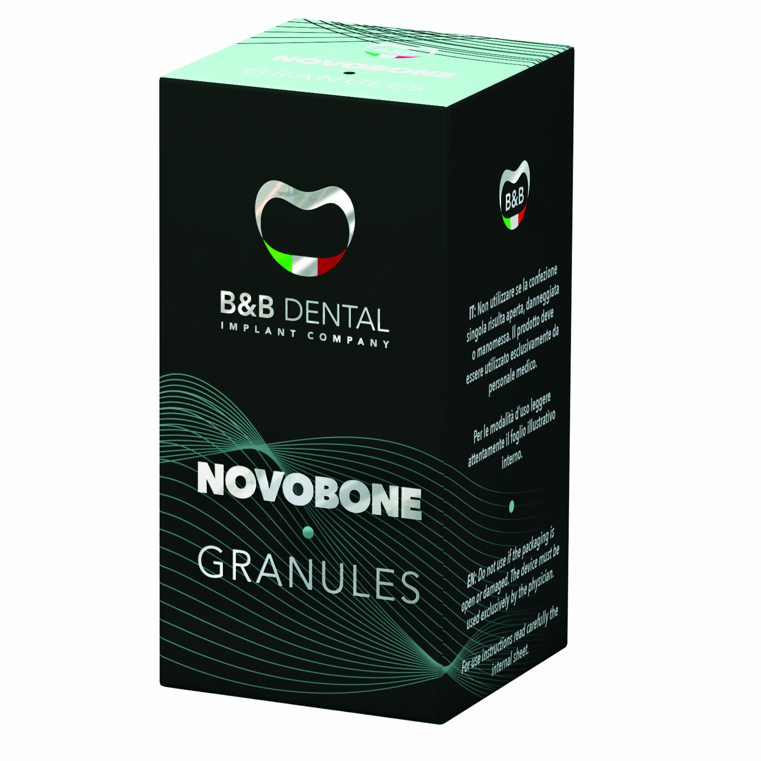 Novobone Granules — это инертный, биосовместимый материал для регенерации костной ткани, полученный из бычьей кости. Он помогает стоматологу в случаях, когда требуется качественная замена костной ткани.